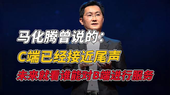 马化腾预测未来10年新趋势:移动互联网下半场,C端市场红利已基本结束,下一轮财富风口在B端,不管是京东淘宝还是腾讯,它们做的都是C端,未来就是看谁能对B端进行服务,未来是产业互联网的时代!